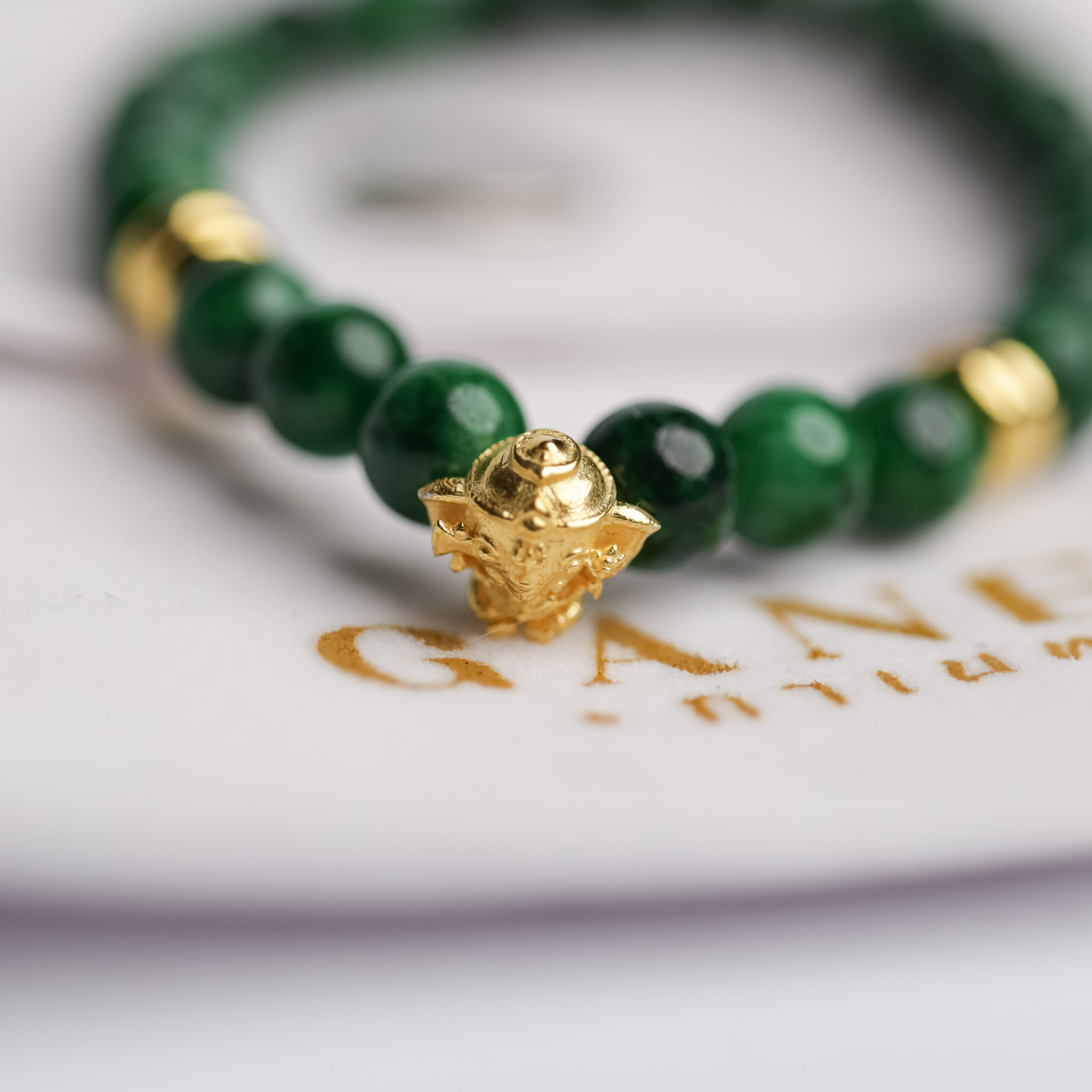 • จี้: แรงบันดาลใจจากพระพิฆเนศ “ผู้ขจัดอุปสรรค” จี้นี้ช่วยนำความชัดเจนและการชี้นำมาสู่ชีวิต เพื่อเคลียร์เส้นทางและนำความสำเร็จสู่การเดินทางของชีวิต • หินคู่: หยกเขียวเข้ม — เป็นที่รู้จักในพลังปกป้อง หยกเขียวเข้มช่วยส่งเสริมความกลมกลืนและสมดุล เข้ากับบทบาทของพระพิฆเนศในฐานะผู้ปกป้องที่ทรงพลัง